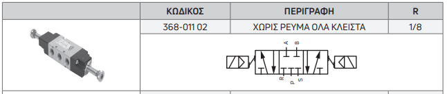 | 368-011 02 | ΧΩΡΙΣ ΡΕΥΜΑ ΟΛΑ ΚΛΕΙΣΤΑ | 1/8 |