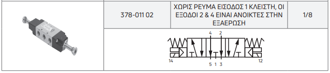 | 378-011 02 | ΧΩΡΙΣ ΡΕΥΜΑ ΕΙΣΟΔΟΣ 1 ΚΛΕΙΣΤΗ, ΟΙ ΕΞΟΔΟΙ 2 & 4 ΕΙΝΑΙ ΑΝΟΙΚΤΕΣ ΣΤΗΝ ΕΞΑΕΡΩΣΗ | 1/8 |