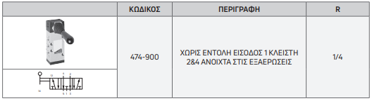 | 474-900 | ΧΩΡΙΣ ΕΝΤΟΛΗ ΕΙΣΟΔΟΣ 1 ΚΛΕΙΣΤΗ 2&4 ΑΝΟΙΧΤΑ ΣΤΙΣ ΕΞΑΕΡΩΣΕΙΣ | 1/4 |