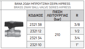 | ΚΩΔΙΚΟΣ | ΠΙΕΣΗ ΛΕΙΤΟΥΡΓΙΑΣ (bar) | R |