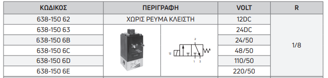 | 638-150 62 | NORMAL CLOSE | 12DC | 1/8 |