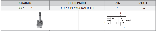 | AA31-CC2 | NORMAL CLOSE | 1/8 | Φ4 |