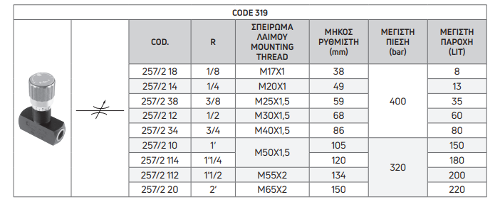 | 257/2 10 | 1’ | Μ50Χ1,5 | 10 5 | 320 | 150 |