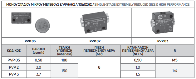 Γεννήτριες κενού (τζιφάρια) μονού σταδίου μικρού μεγέθους & υψηλής απόδοσης