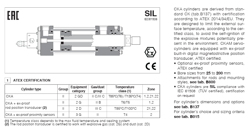 Hydraulic Cylinders type CKA / CKAM with ATEX Cert.