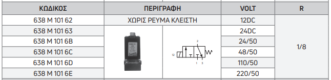 Ηλεκτροβαλβίδες αέρος Τρίοδες Σειρά 6 κωδ. 638Μ