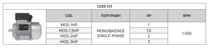 | MOS-1HP | ΜΟΝΟΦΑΣΙΚΟΣ SINGLE-PHASE | 1 | 1.450 |