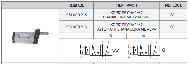 | 951 000 P16 | ΧΩΡΙΣ ΡΕΥΜΑ 1 -> 2 ΑΥΤΟΜΑΤΗ ΕΠΑΝΑΦΟΡΑ ΜΕ ΑΕΡΑ | ISO 1 |