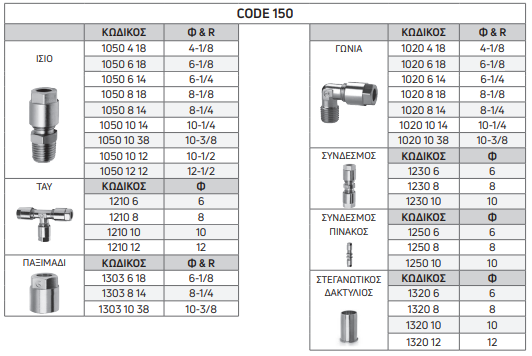 | ΚΩΔΙΚΟΣ | Φ & R | 1250 10 | 10 |