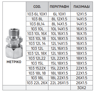 | 103 6L 10X1 | 6L 10X1 | 12X1.5 |