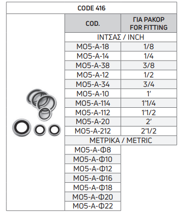 | COD. | ΓΙΑ ΡΑΚΟΡ FOR FITTING |