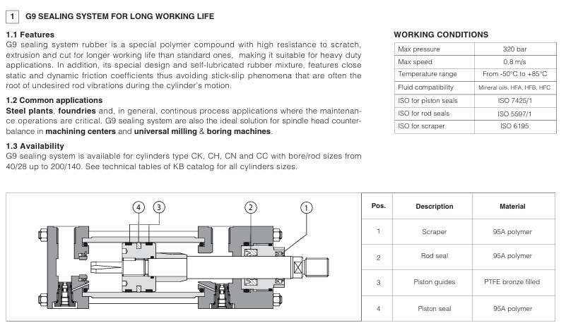Special seals for cylinders type G0, G9