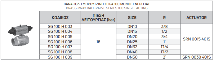 | ΚΩΔΙΚΟΣ | ΠΙΕΣΗ ΛΕΙΤΟΥΡΓΙΑΣ (bar) | SIZE | R | ACTUATOR |