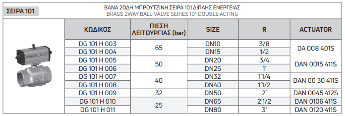 Βάνα 2οδη μπρούτζινη σειρά 101 διπλής ενέργειας