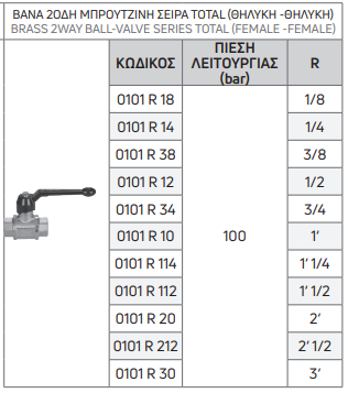 | ΚΩΔΙΚΟΣ | ΠΙΕΣΗ ΛΕΙΤΟΥΡΓΙΑΣ (bar) | R |