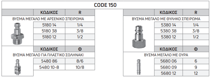 Βύσματα ταχυσυνδέσμων για πεπιεσμένο αέρα σειρά 5000 (μεγάλα)